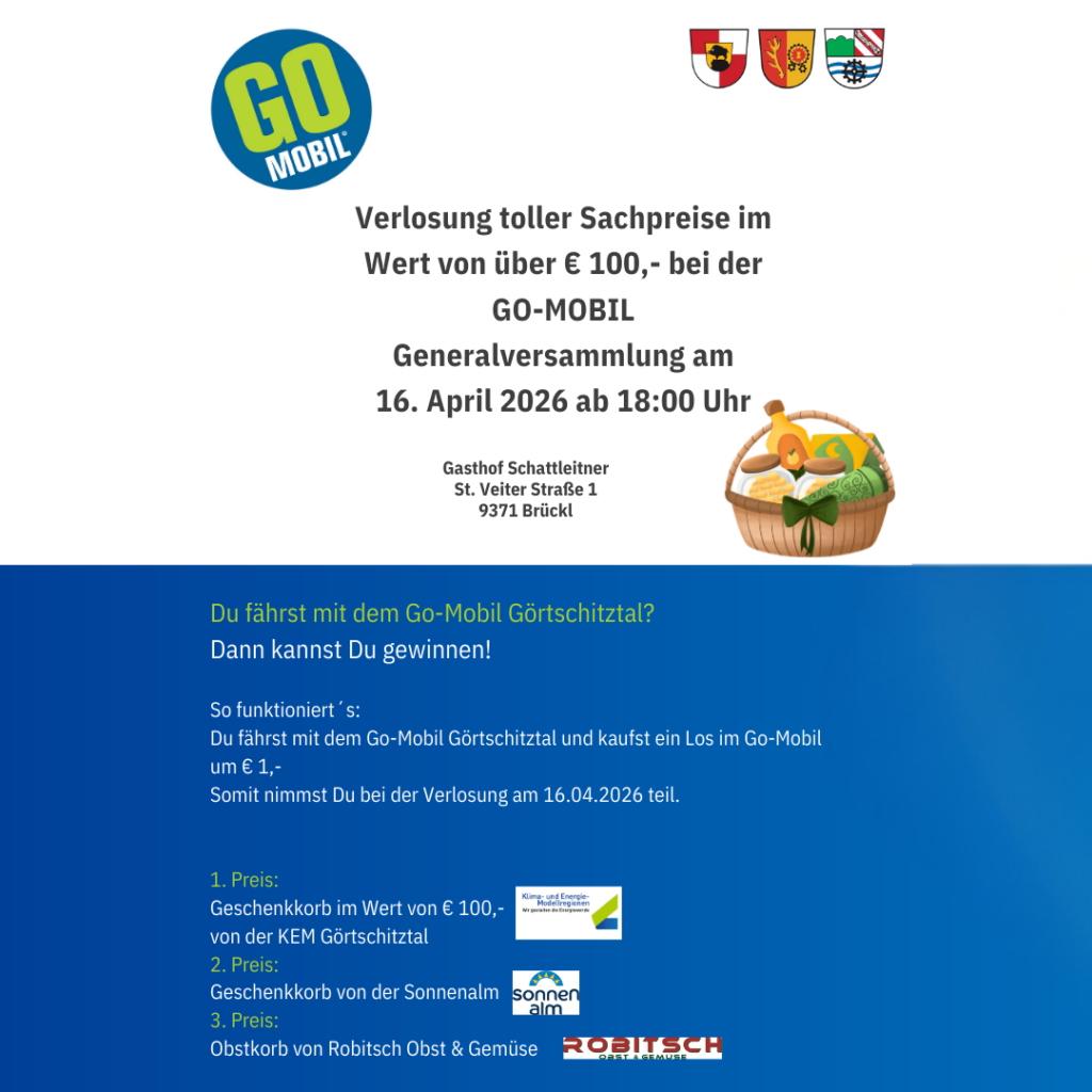 Bei der GO-Mobil Generalversammlung gibt es tolle Sachpreise im Wert von über € 100,- zu gewinnen! 🧺✨