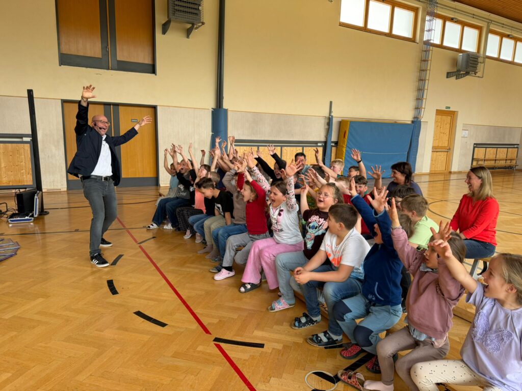 Magie kann mehr als nur verzaubern – sie kann auch zum Nachdenken anregen. Das wurde in einer außergewöhnliche Klimamagie-Show, die in der VS Hüttenberg stattgefunden hat, bewiesen. In einer mitreißenden Mischung aus Zauberkunst, Humor und interaktiven Elementen wurden komplexe Klimathemen spielerisch und verständlich vermittelt.