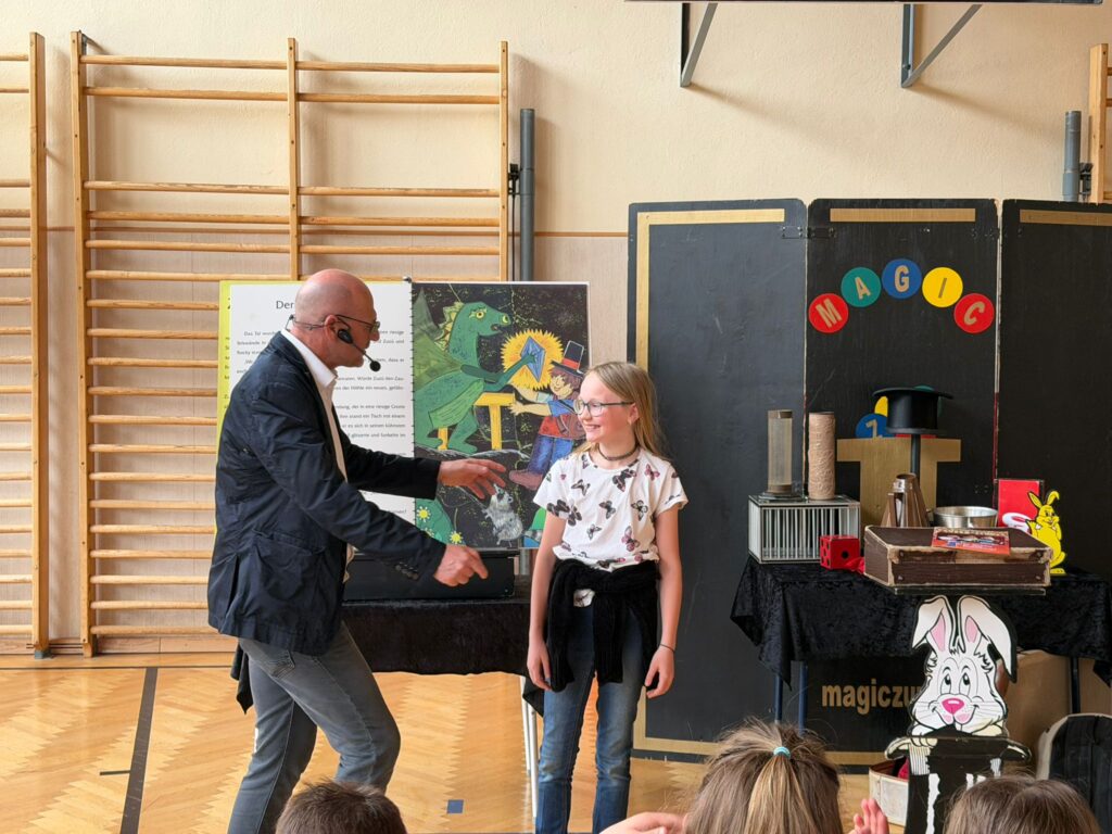 Der Magier, Magic Zuze, nimmt das Publikum mit auf eine Reise durch Themen wie Energie, Ressourcenverbrauch und Klimaschutz. Mit scheinbar unmöglichen Tricks – etwa verschwindendem Müll oder überraschenden Verwandlungen – machte er sichtbar, wie sehr unser Handeln die Umwelt beeinflusst. Immer wieder werden die Kinder aktiv eingebunden, dürfen mitzaubern, Fragen stellen und eigene Ideen einbringen.