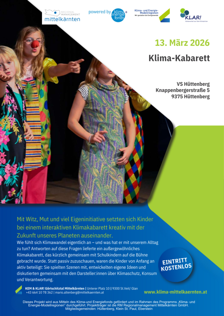 Wie fühlt sich Klimawandel eigentlich an – und was hat er mit unserem Alltag zu tun? Antworten auf diese Fragen liefert ein außergewöhnliches Klimakabarett, das gemeinsam mit Schulkindern auf die Bühne gebracht wird. Statt passiv zuzuschauen, sind die Kinder von Anfang an aktiv beteiligt: Sie spielen Szenen mit, entwickeln eigene Ideen und diskutieren gemeinsam mit den Darsteller:innen über Klimaschutz, Konsum und Verantwortung.